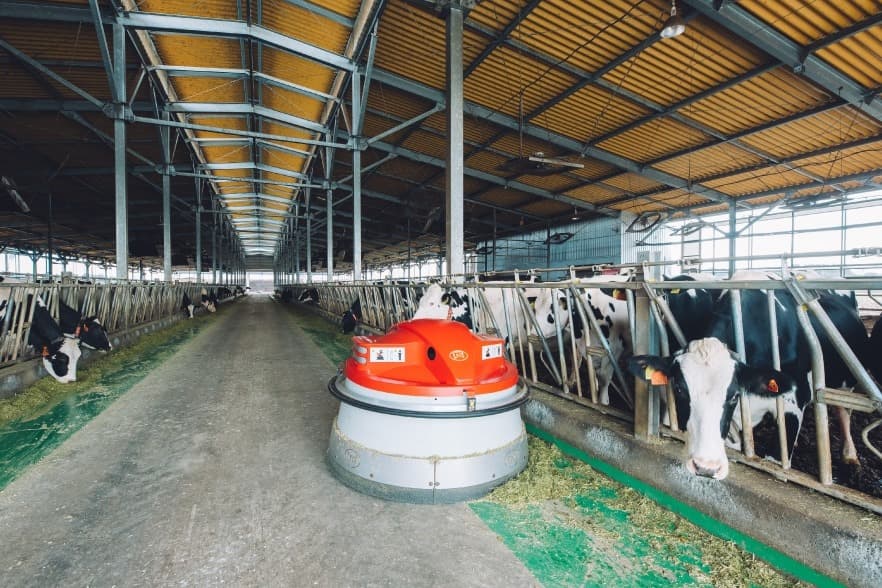 24時間365日稼働する酪農現場で、ロボット搾乳や清掃の機械化は省力化と効率化を実現。
