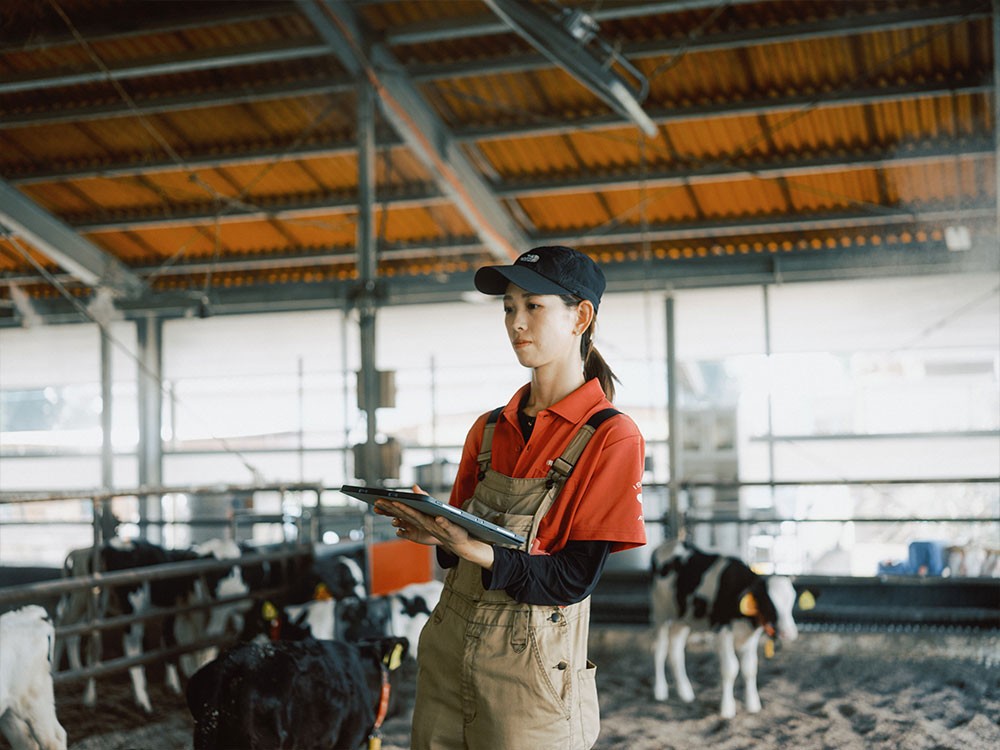 最先端技術と人の経験を融合させることで、牛にも人にもやさしい牧場経営を実現しています。
